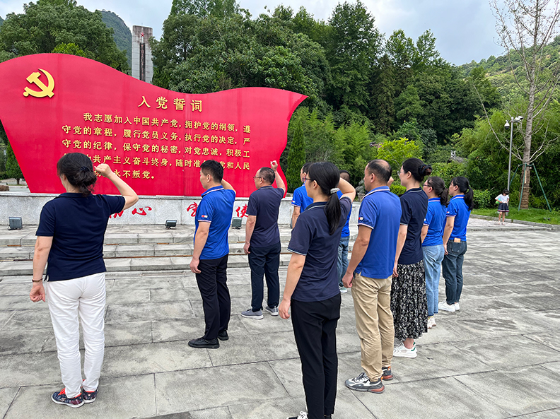 在紀(jì)念館門(mén)口,公司黨委書(shū)記周玨帶領(lǐng)大家重溫入黨誓詞,激勵(lì)和鞭策自己始終銘記入黨誓言,重溫當(dāng)年入黨的決心和信心,堅(jiān)定理想信念和信仰追求。